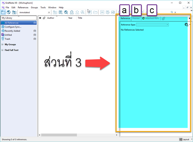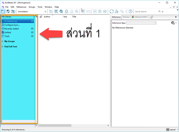 1.My Library หรือ Groups Panel ส่วนนี้แสดงจำนวนรายการข้อมูลอ้างอิงทั้งหมด แสดงกลุ่มของข้อมูล (My Group)