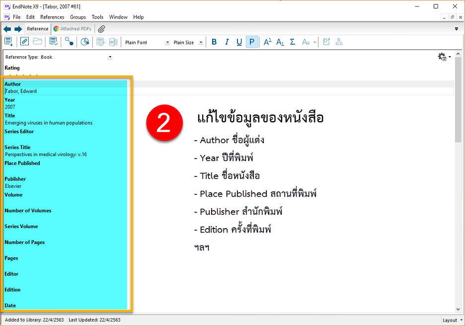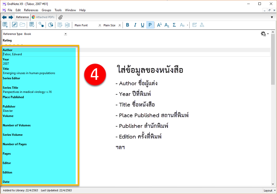 ตัวอย่างขั้นตอนการนำรายการอ้างอิงประเภทหนังสือเข้าสู่ EndNote Library