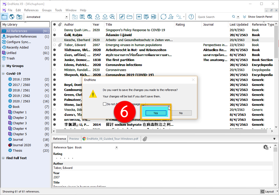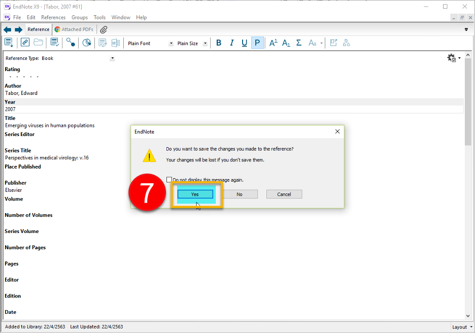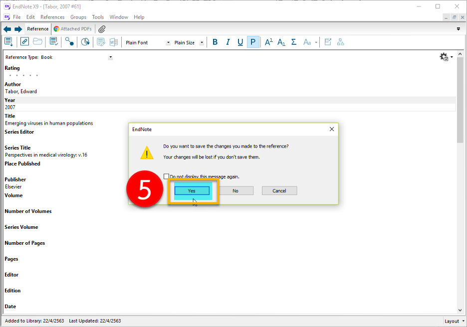 STEP 7: คลิก Yes เพื่อทำการบันทึกรายการอ้างอิง