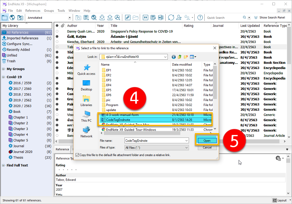 ผู้เขียนต้องการอ้างอิงหนังสือเล่มนี้ในการทำงานวิจัยของตนเอง โดยสามารถนำเข้าข้อมูล เข้าสู่โปรแกรม EndNote ได้ ดังนี้