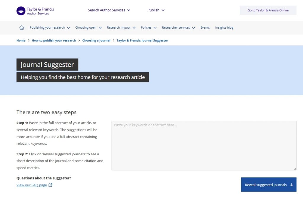 🔍 4. Taylor & Francis Journal Suggester (https://authorservices.taylorandfrancis.com/journal-suggester/)