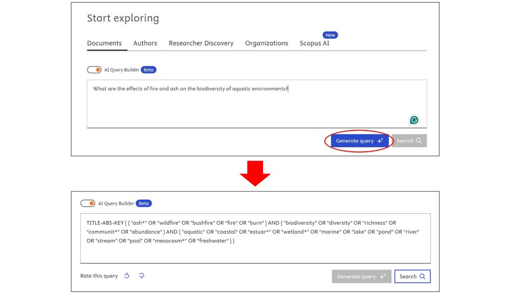 AI Query Builder จะไม่ได้สร้างคำตอบหรือสรุปเนื้อหาให้ผู้ใช้เหมือน Scopus AI แต่ผลลัพธ์ที่ได้จากการใช้งานยังคงเป็น รายการบทความวิชาการ (research papers) เช่นเดียวกับการค้นใน Scopus แบบปกติ โดย AI Query Builder ทำหน้าที่เป็นผู้ช่วยในขั้นตอนตั้งต้นของการค้น เพื่อให้ผู้ใช้สามารถเข้าถึงเอกสารที่ตรงประเด็นมากขึ้นตั้งแต่เริ่มต้น และลดภาระในการลองผิดลองถูกจากการคิดคำค้นด้วยตนเอง