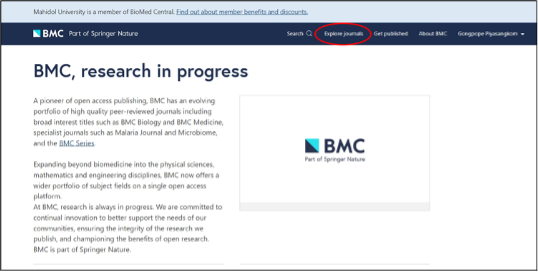 วิธีรับส่วนลดค่าตีพิมพ์ 15% ในการยื่นตีพิมพ์บทความในวารสารบนฐานข้อมูล BioMed Central สำหรับบุคลากรมหาวิทยาลัยมหิดล