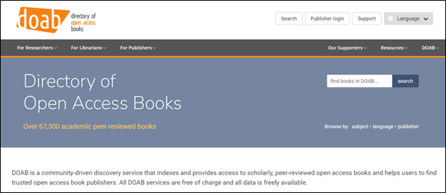 เข้าใช้ฐานข้อมูล DOAB ได้ที่ https://www.doabooks.org/