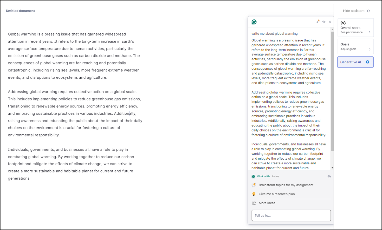 – ผู้ใช้งานสามารถใช้ Grammarly ในการสร้างข้อความหรือบทความใหม่ตามหัวข้อที่ต้องการ ซึ่งจะเป็นประโยชน์สำหรับการเริ่มต้นเขียนบทความหรือเอกสารใหม่หากผู้ใช้งานยังไม่มีไอเดียชัดเจน
