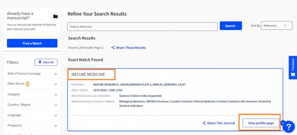 ระบบจะแสดงค่า JCI ของวารสาร Nature Medicine ดังภาพด้านล่าง