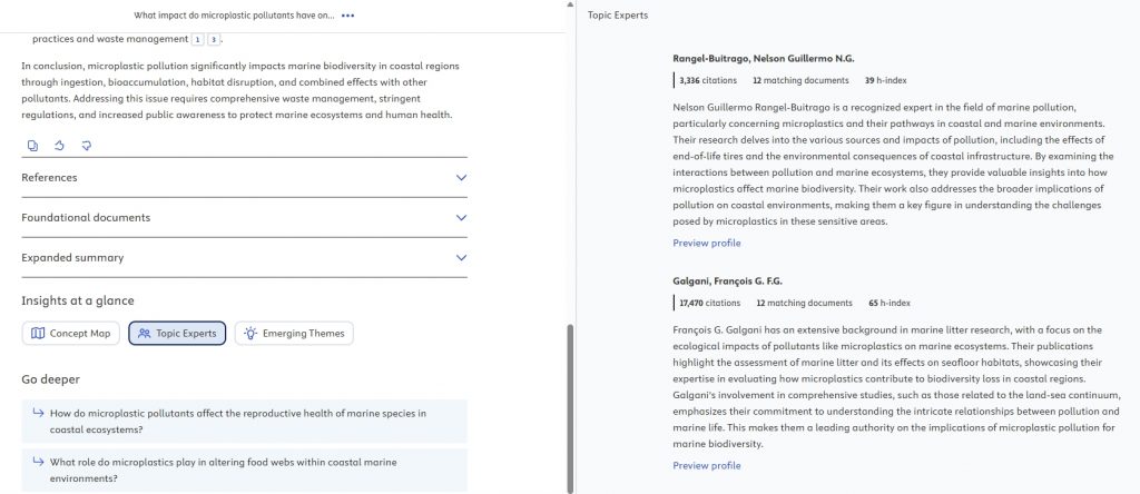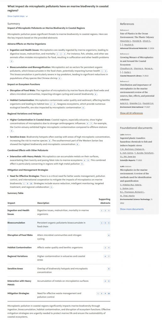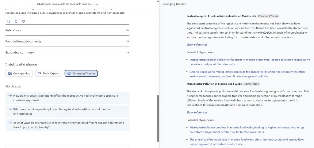 • ประหยัดเวลา — ได้สรุปเนื้อหา ภาพรวมแนวคิด (Concept map) หัวข้อที่กำลังมาแรง (Emerging themes) และเอกสารพื้นฐานสำคัญในไม่กี่วินาที แทนที่จะต้องอ่านบทคัดย่อหลายสิบฉบับเอง รวมถึงฟีเจอร์ Deep Research ช่วยช่วยสร้างรายงานยาว ๆ ได้ในไม่กี่นาที)