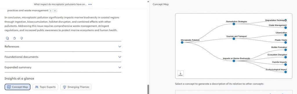 • แสดงองค์ประกอบเพิ่มเติม เช่น แผนที่แนวคิด (Concept map), เอกสารพื้นฐานสำคัญ (Foundational documents), ผู้เชี่ยวชาญด้านหัวข้อ (Topic Expert), หัวข้อที่กำลังเกิดขึ้น (Emerging themes) (รูปภาพ 2-4)