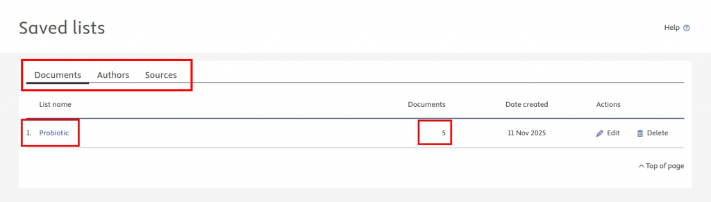 เมื่อพบบทความที่ต้องการบันทึกไว้เพื่ออ่านหรืออ้างอิงในภายหลัง ผู้ใช้สามารถใช้ฟีเจอร์ “Save to list” เพื่อจัดเก็บรายการนั้นเข้าสู่ลิสต์ส่วนตัวได้ทันที โดยสามารถสร้างลิสต์เพื่อจัดหมวดหมู่ของเนื้อหาที่สนใจ อย่างเช่น “Probiotics Review,” “AI in Healthcare,” หรือ “Literature for Thesis.” ฟีเจอร์นี้ช่วยให้ผู้ใช้รวบรวมบทความจากการสืบค้นหลายครั้งไว้ในที่เดียว ไม่ว่าจะค้นจากคำค้นหรือช่วงเวลาที่ต่างกัน ทำให้ง่ายต่อการตรวจสอบ เปรียบเทียบ และเรียกดูภายหลังได้