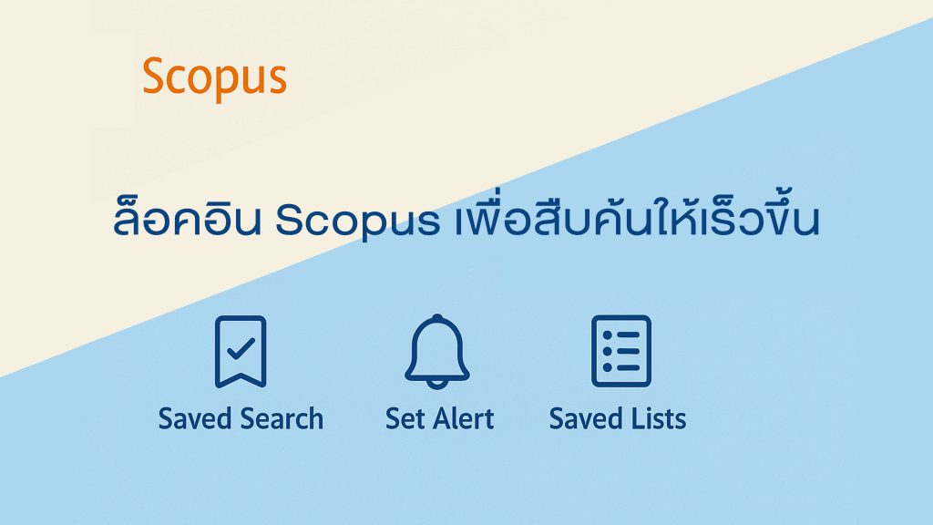 ฟีเจอร์ Saved Search, Set Alert, และ Saved Lists บน Scopus ช่วยให้การสืบค้นและจัดการบทความวิจัยเป็นระบบมากขึ้น ผู้ใช้สามารถบันทึกชุดคำค้นเพื่อนำกลับมาใช้ซ้ำ ตั้งอีเมลแจ้งเตือนบทความใหม่ในหัวข้อเดิม และรวมบทความที่สนใจไว้ในลิสต์ส่วนตัวโดยไม่ต้องเริ่มต้นค้นใหม่ทุกครั้ง การล็อกอินเพียงครั้งเดียวจึงช่วยประหยัดเวลา เพิ่มความแม่นยำ และทำให้การติดตามความเคลื่อนไหวของงานวิจัยต่อเนื่องและสะดวกยิ่งขึ้น